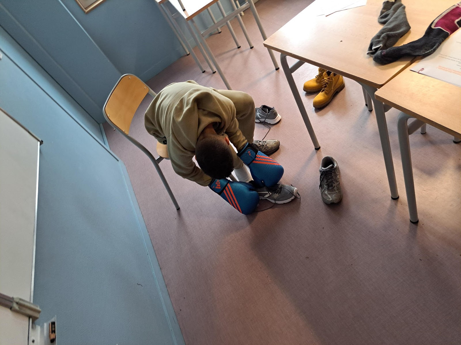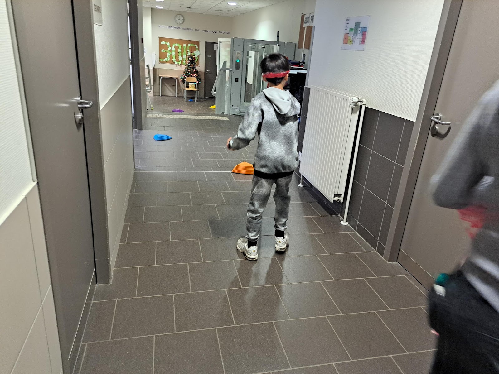 Un parcours “déficience visuelle" a été installé dans le couloir face au CDI, complété par un atelier spécifique dans les salles du foyer. Guidés ou les yeux bandés, les élèves ont expérimenté les déplacements avec une canne blanche, une manière concrète de se sensibiliser aux obstacles quotidiens rencontrés par les personnes malvoyantes ou non-voyantes.