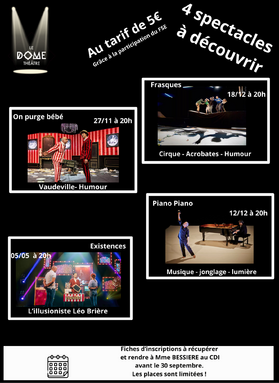 Par BERANGERE BESSIERE, publié le mardi 30 septembre 2025 13:03 - Mis à jour le mardi 30 septembre 2025 13:04.🎭Il reste encore quelques places pour assister aux spectacles en soirée 😁 -