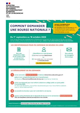 Si vous n'avez pas donné votre consentement, au collège, pour l'étude automatique du droit à bourse via le formulaire " fiche de renseignements bourses vierge" qui se trouve parmi les fichiers ci-dessous, vous pourrez, en cliquant sur le lien suivant, faire la demande de bourse en ligne avant le 16 octobre 2025 :